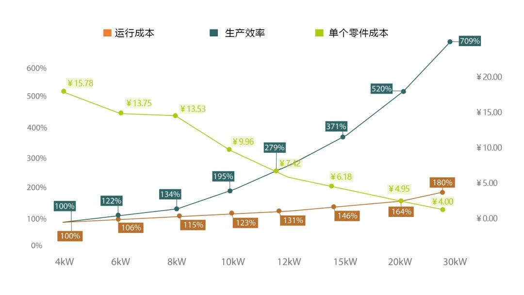 30kW不仅保证了生产流程,在运行成本略微增加情况下,相比于常见6kW级大功率激光切割系统生产销售速度上升数倍。进一步助力客户控制成本提高生产率。大幅降低单个零件制造成本。